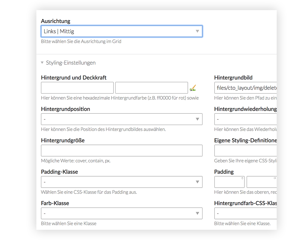 The first grid system with live grid preview in the backend. Control column with +/- button.