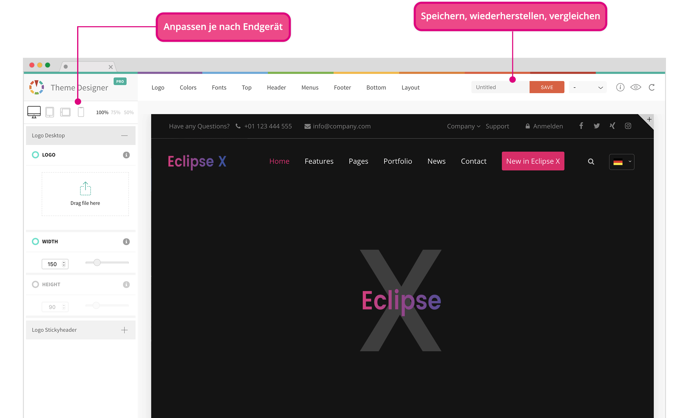 Design customization options, PageSpeed and SEO for smartphones pushed to the top.